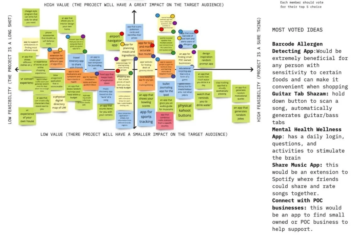 At the start of our development process, we were uncertain about the type of app to create, but we were clear on one goal: to develop something that would improve people's day-to-day experiences. While we initially considered music apps as a potential solution for mental health, after voting on the ideation board, we decided to focus on creating an app that would address mental health more directly.